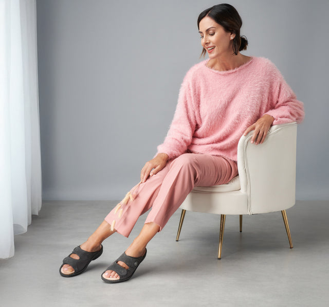I modelli della linea “FinnStretch” sono dotati di inserti speciali realizzati con materiali elastici che si adattano a ogni forma, soprattutto nella zona dell’alluce valgo, riducendo in modo significativo il dolore. Tutti i modelli sono dotati di solette ultra-morbide che assicurano un supporto eccezionalmente ammortizzato.