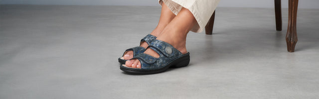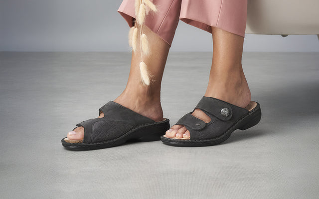 È meraviglioso sentirsi a proprio agio in casa. Per questo FinnComfort® propone un’ampia scelta di pantofole, pianelle e sabot. Comode e accoglienti, si adattano facilmente al tuo piede grazie ai cinturini e alle allacciature regolabili.